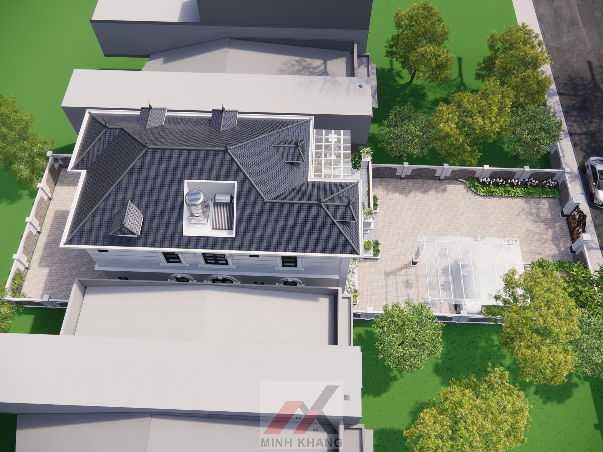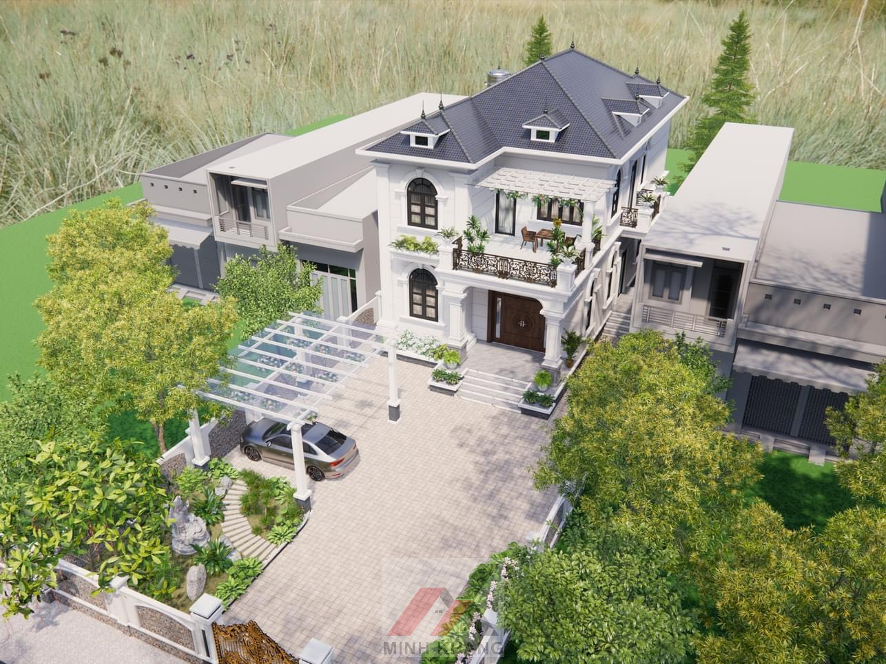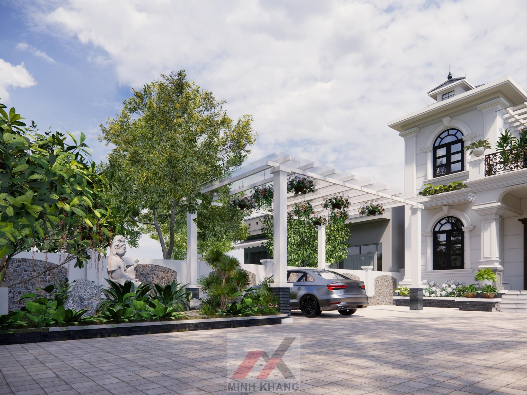 Ngôi biệt thự mang phong cách tân cổ điển châu Âu, nổi bật với gam màu trắng chủ đạo kết hợp cùng mái Nhật xanh than trang nhã.