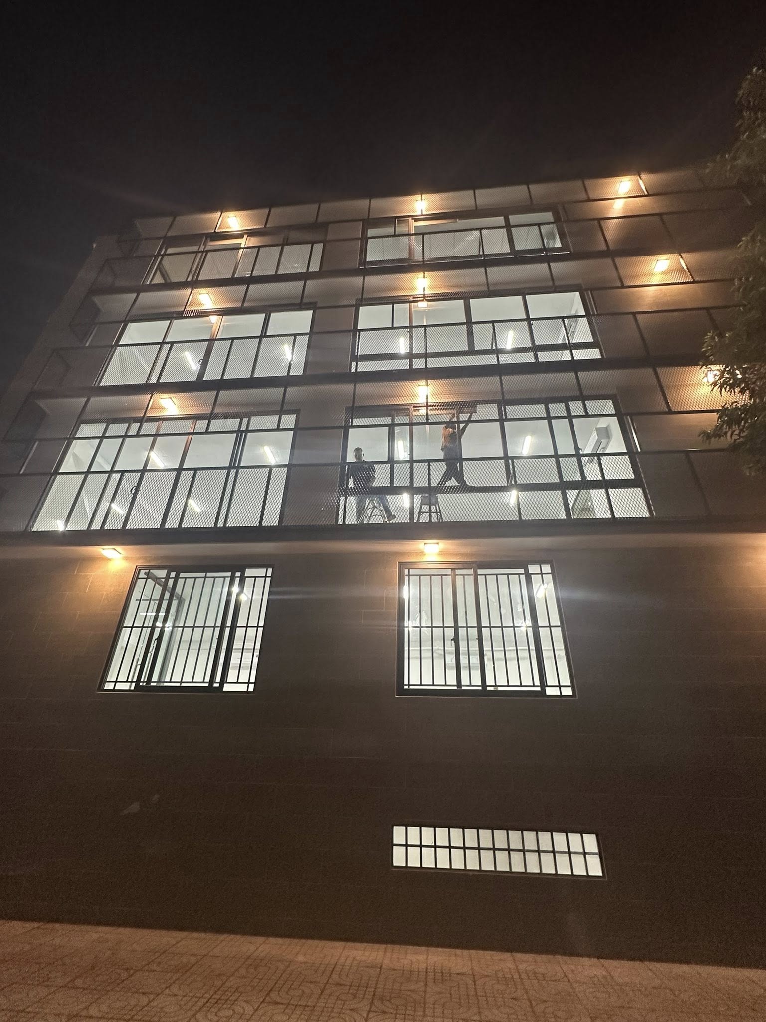 Ngôi nhà văn phòng được thiết kế theo phong cách hiện đại – tối giản, với mặt tiền sử dụng hệ khung sắt và lưới bảo vệ mỹ thuật, vừa đảm bảo an toàn, vừa tạo điểm nhấn kiến trúc mạnh mẽ vào ban đêm khi hệ thống đèn LED được bật sáng.