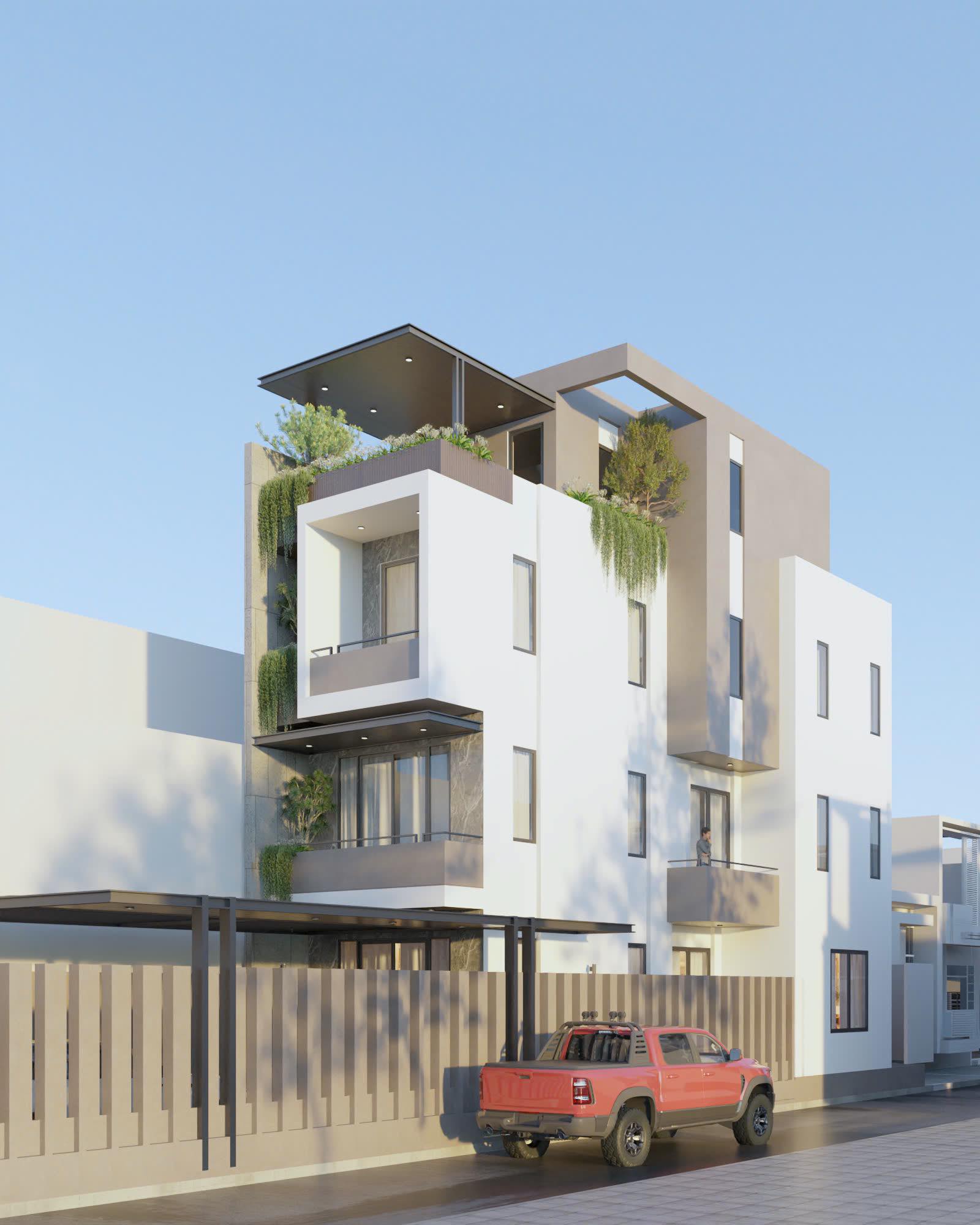 🌿 Những mảng xanh điểm xuyết nơi ban công, kết hợp cùng lam che nắng tinh tế trên tầng thượng, tạo nên không gian sống vừa thoáng đãng vừa gần gũi thiên nhiên – một điểm nhấn nổi bật giữa khu dân cư đô thị năng động.